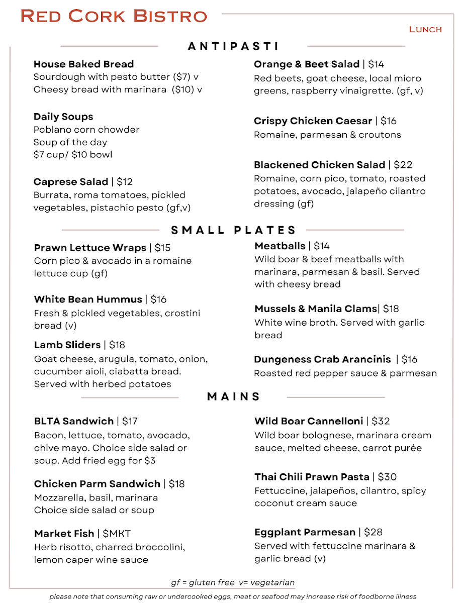 Seafood Stew with Lobster, Clams, Prawns, and Market Fish in a Chorizo Broth. Served with Garlic Bread.